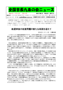 一方で立憲野党が小選挙区での候補者一本化に努め、市民連合が提起した「野党共通政策の提言」を立憲野党の共通政策として確認したことは、国民の期待に応えるものでした。私たち「全国首長九条の会」も、「憲法に基づく政治の回復」が掲げられた共通政策の実現に、大きな期待を寄せていました。小選挙区で一本化候補の勝利が59議席にのぼり、当選した自民党候補との得票差10%以内の接戦区は33あったという事実は、「市民と野党の共闘」が政治転換につながる道であるとはっきり示しています。