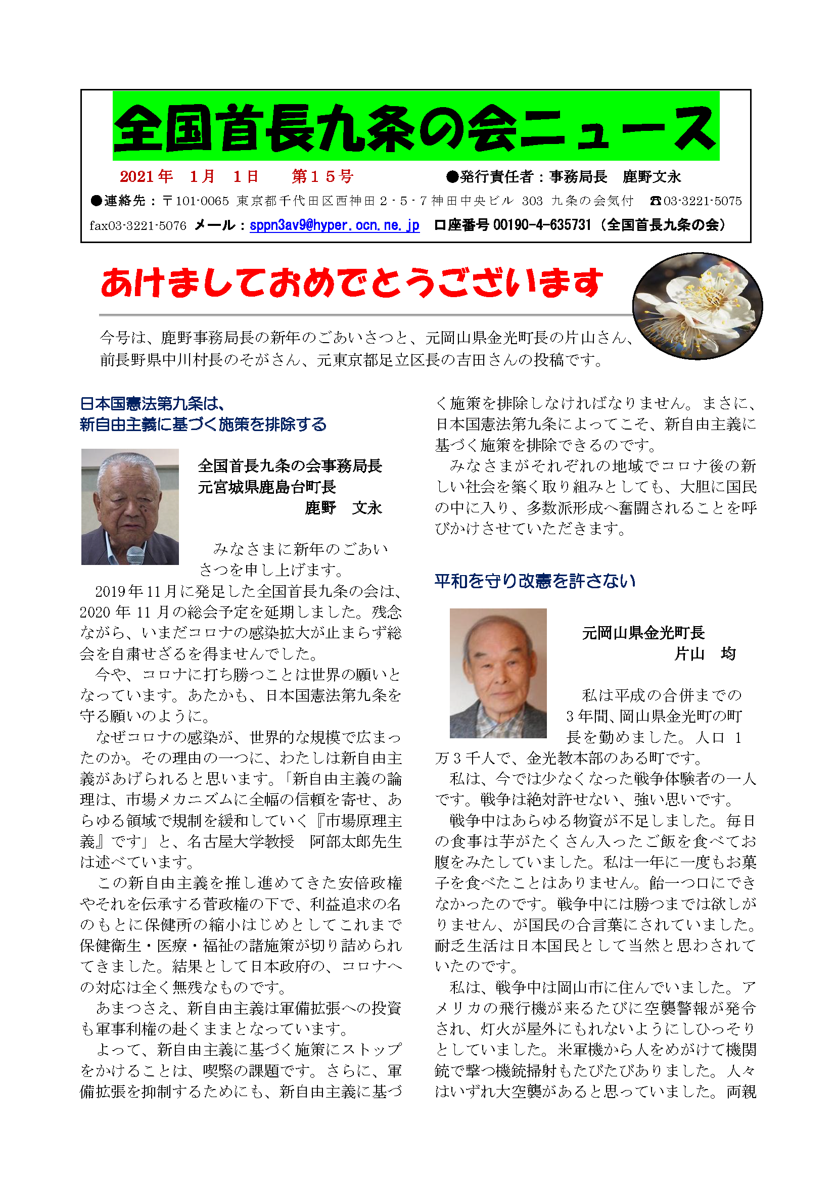 全国首長九条の会ニュース 第15号