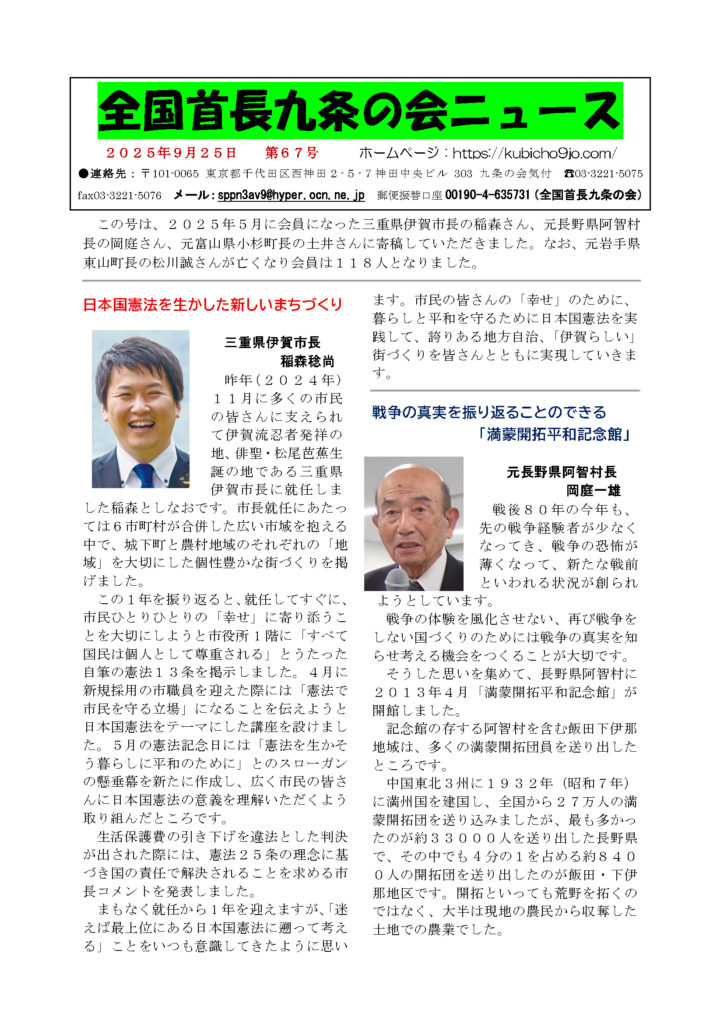 全国首長九条の会ニュース 67号