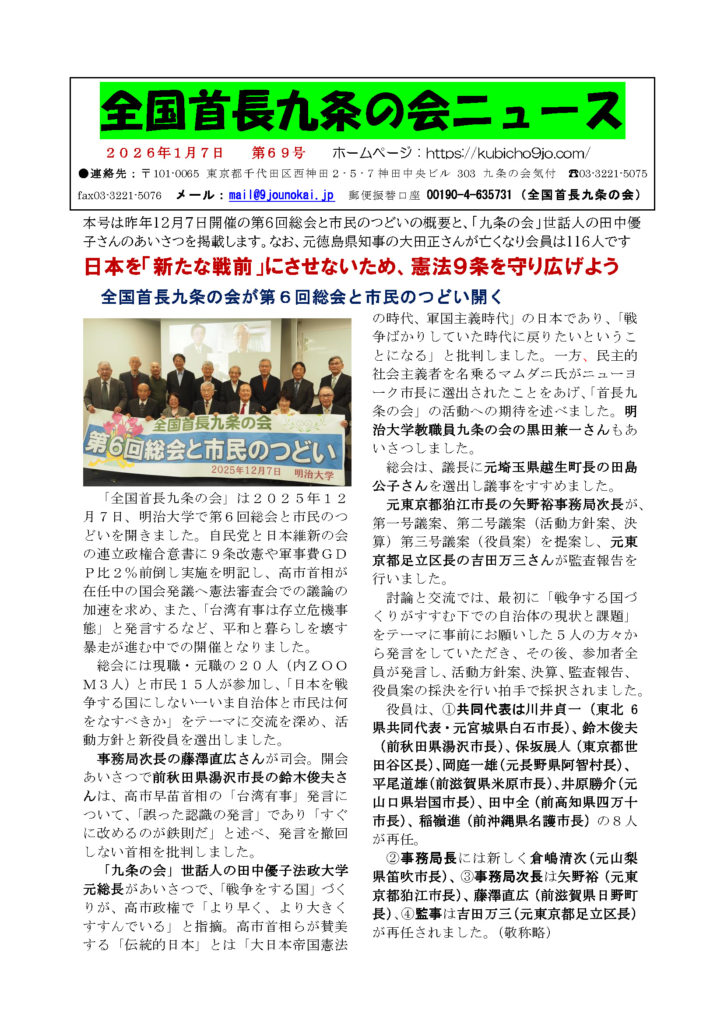 全国首長九条の会ニュース 69号